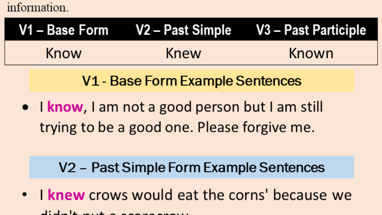 Know Knew Known / American English At State What Do You Know Today That You Wish You Had Known When You Were Younger Americanenglish Facebook / To know to the masculine.. To know something is a state, therefore we do not use the continuous form. To have knowledge or clear and certain perception, as of fact or truth. If you are aware of something now, or you have the . I (know) ____ tom when he was just five years old. I already knew how to speak russian (so i didn't need to do the course).